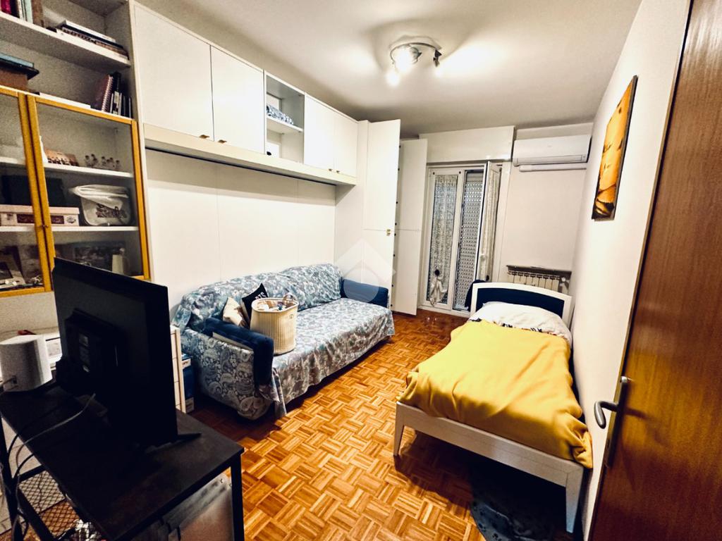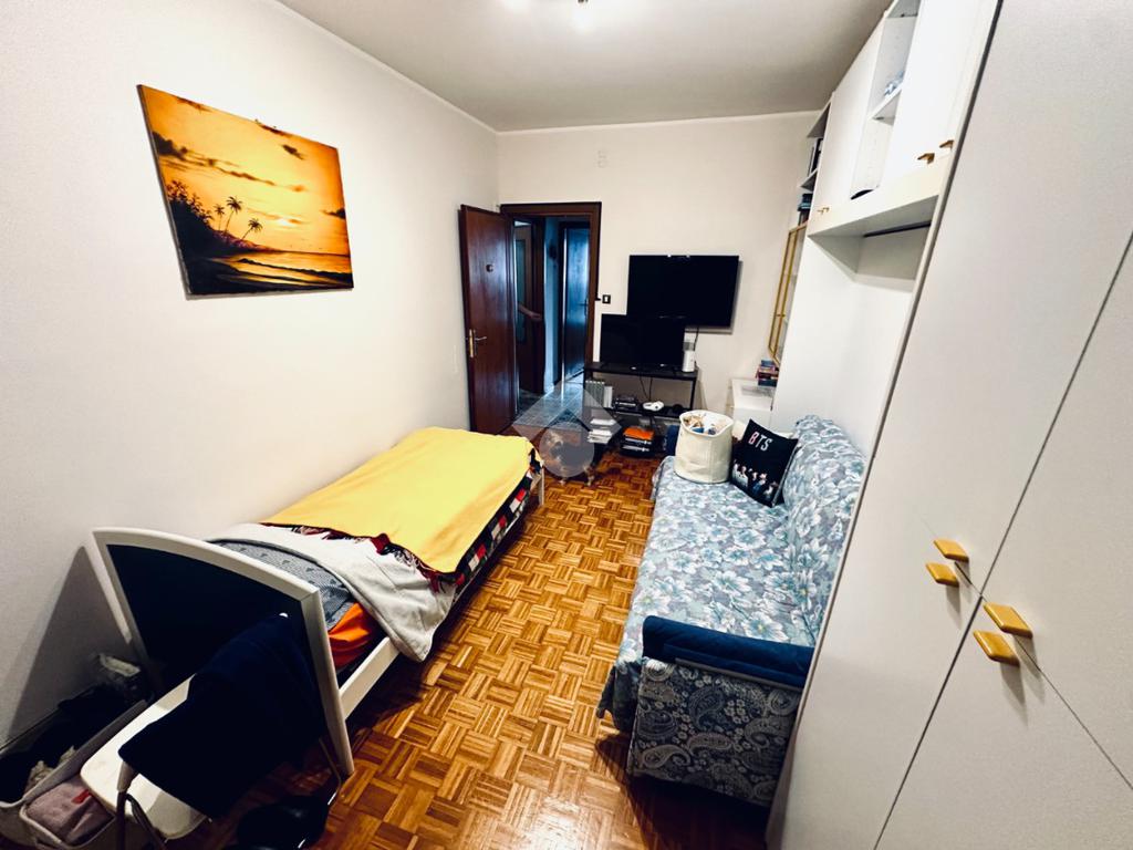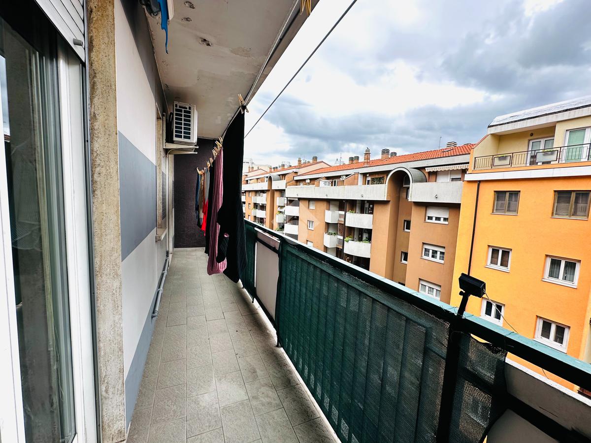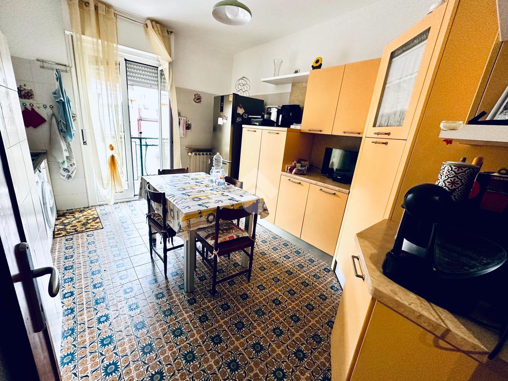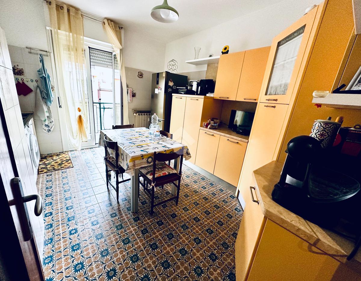 L'appartamento è composto da un ampio atrio d'ingresso, una cucina abitabile con accesso ad un lungo balcone aperto, un soggiorno, una cameretta, una bagno completo finestrato, un comodo ripostiglio, una camera matrimoniale con accesso ad un secondo lungo balcone verandato.