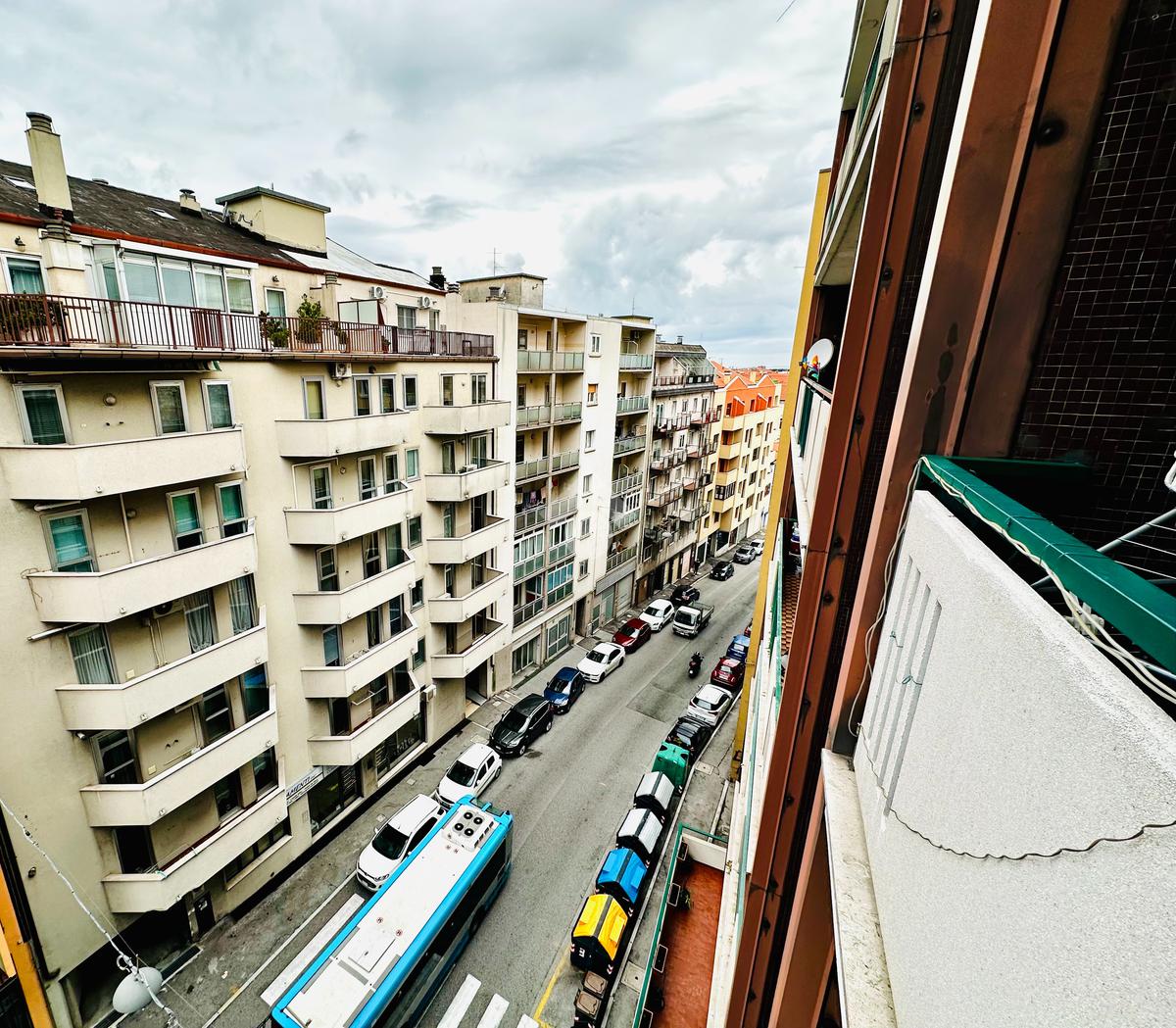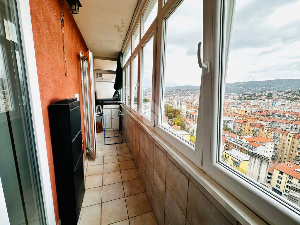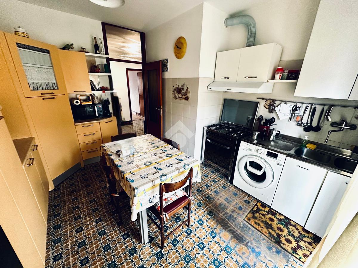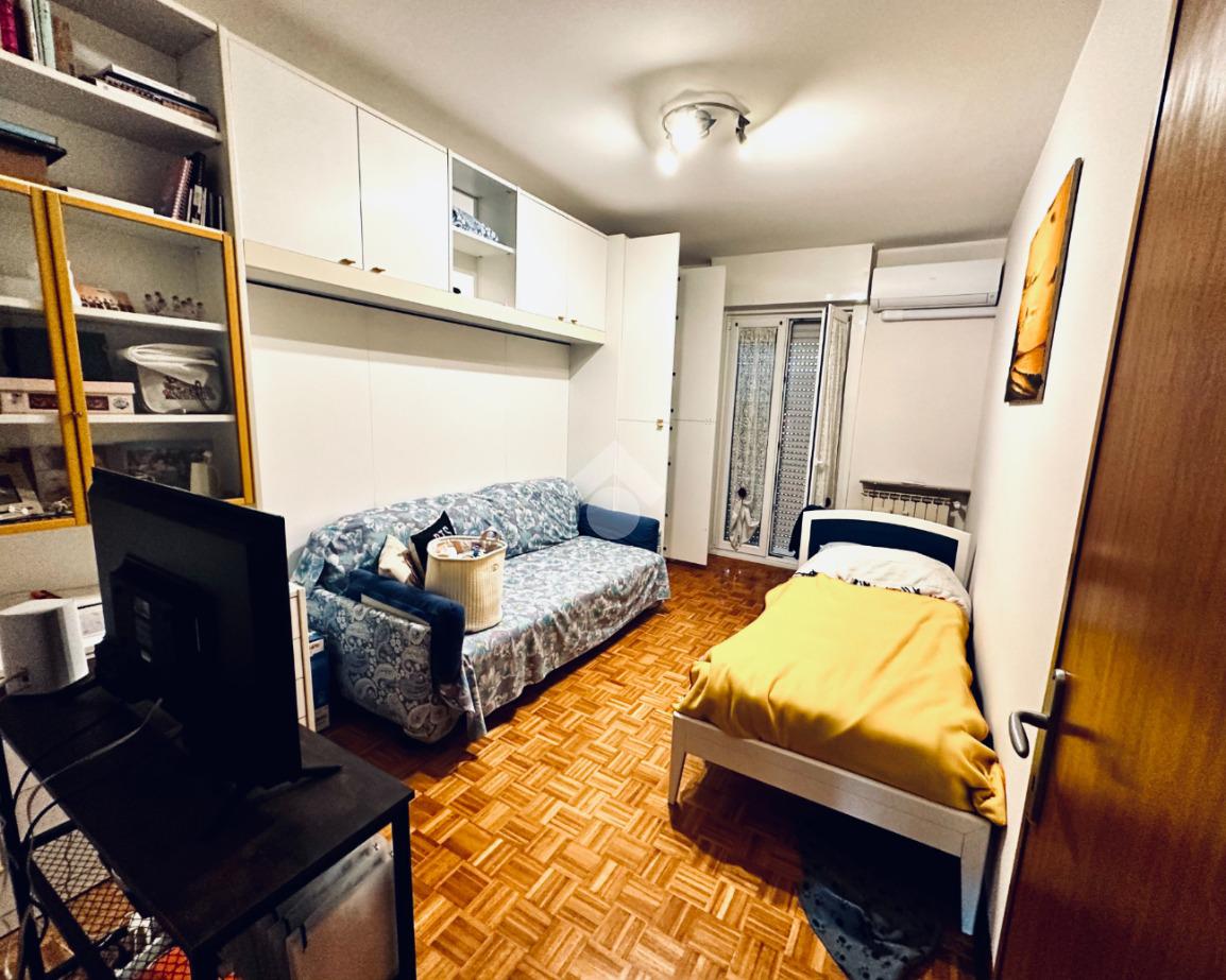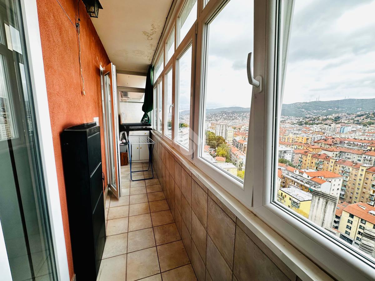 L'appartamento è composto da un ampio atrio d'ingresso, una cucina abitabile con accesso ad un lungo balcone aperto, un soggiorno, una cameretta, una bagno completo finestrato, un comodo ripostiglio, una camera matrimoniale con accesso ad un secondo lungo balcone verandato.